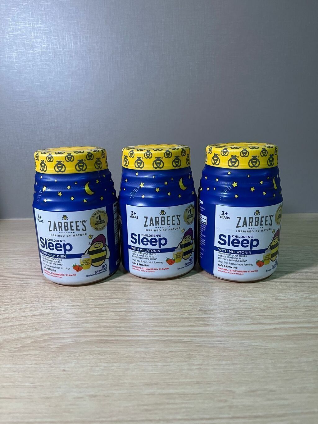 Zarbee's Kids Melatonin Gummy, suplemento de auxílio ao sono infantil, suplemento de sono eficaz e sem medicamentos para crianças de 3 anos ou mais, não viciante, sabor natural de morango, 60 gomas